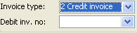 To create a credit invoice you use the invoice type "2 Credit" or "5 Cash credit" in the Invoice type field. You will then also see the Debit inv. no field where you can select the debit invoice that should be credited.