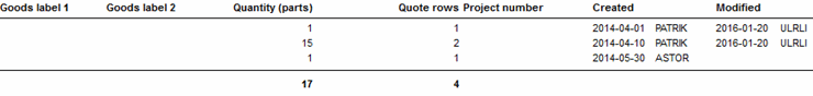 In the Check quote header - quote rows list you will see how many quote rows each quote contains. Here you will find information about Quote number, Customer code, Name, Status and number of Quote rows.