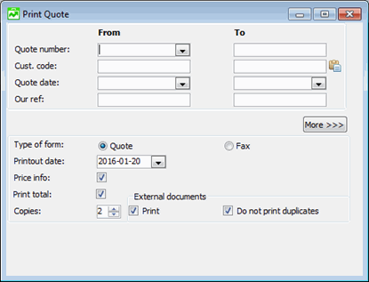 Then you should use one of the three different printout methods to print quotes: Preliminary selection, Selecting individual quotes or Direct printing via intervals.