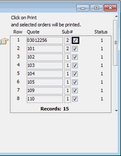 In this mode, you will see all the orders from the order register within the interval that you selected in the left portion of the window. In the right portion you can now deselect (uncheck) the quotes that you do not want to print. This is an example of Method 1 - "Preliminary selection". To return to the left portion, just click the Less <<< button.