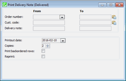 The settings for printouts here are Printout date, Copies, Print backordered rows and Reprint.