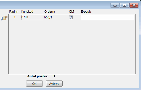 You approve the printout by clicking on the OK button. All the orders that are selected under the OK? column will be given status 4 (Delivery note printed).