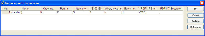 If the scan is made using a two-dimensional bar code, the code must contain details of how the information is loaded. This is to make sure that the scanned information is placed in the right fields in MONITOR. For this purpose, there is a special window where you define the starting character(s) for each field. In the PDF417 Start field you enter the value that indicates that this is a two-dimensional code. In the PDF417 Separator field you enter the character(s) that ends a field.