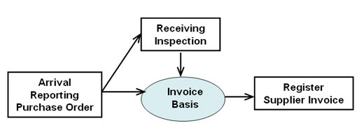 A flow chart over arrivals and how they are linked to supplier invoices.