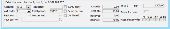 Under the Rows tab you register what you are purchasing. If you are editing an existing purchase order, you can use this window to add, delete or modify order rows.