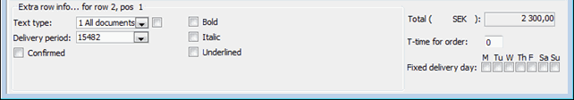 There are different row types for an order row. First, you select a row type for new order rows. The order rows consist of different columns with information. The columns may change depending on which row type that has been entered. The standard available columns are: