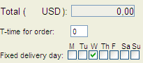 see image) you will always see the Total amount of the order. If the supplier has a fixed delivery day, it will be shown under the total amount. You can also enter Transport time for order.