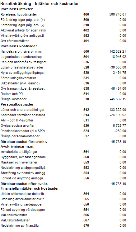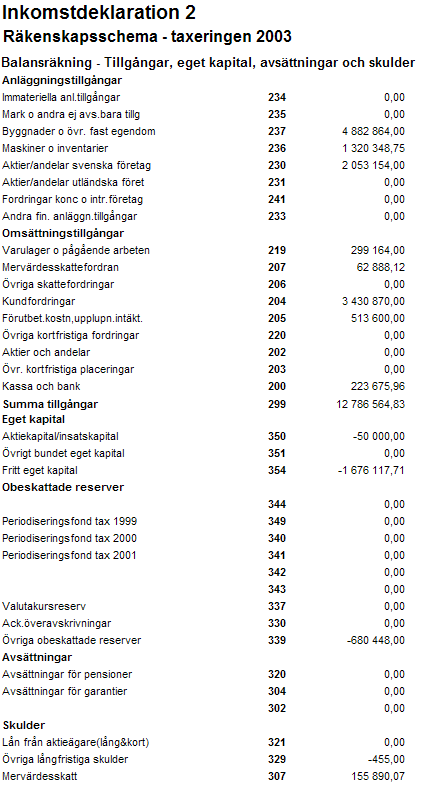 The form is constructed according to the tax return that you hand in to the tax authorities (Swedish).