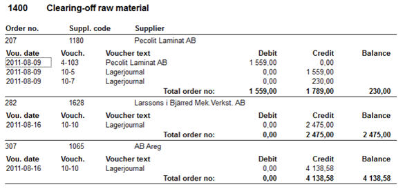 By right-clicking you can via the Info Menu link to the procedures Register Vouchers, Register Purchase Orders and Register Customer Orders.