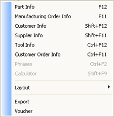 By right-clicking in the Voucher number field you can access functions on the Info menu.