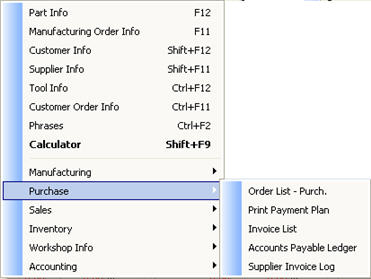 The Info menu is shown per module, containing links to different procedures. Links are available to the following procedures: