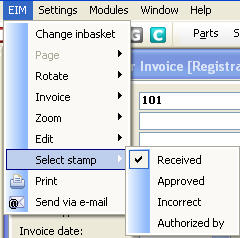in the toolbar and then place the cursor on the invoice where the stamp should be placed. When you have selected a stamp a green check mark is displayed on the stamp symbol