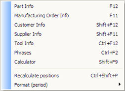 In the Position (Pos.) column you will see a position number for each row. You can change this position number if needed. You can manually enter a number here by clicking in the row. Sometimes you need to do this if you want to insert or delete rows. By using the Recalculate positions command in the Info menu, you can update the position numbering if for example a row has been deleted.