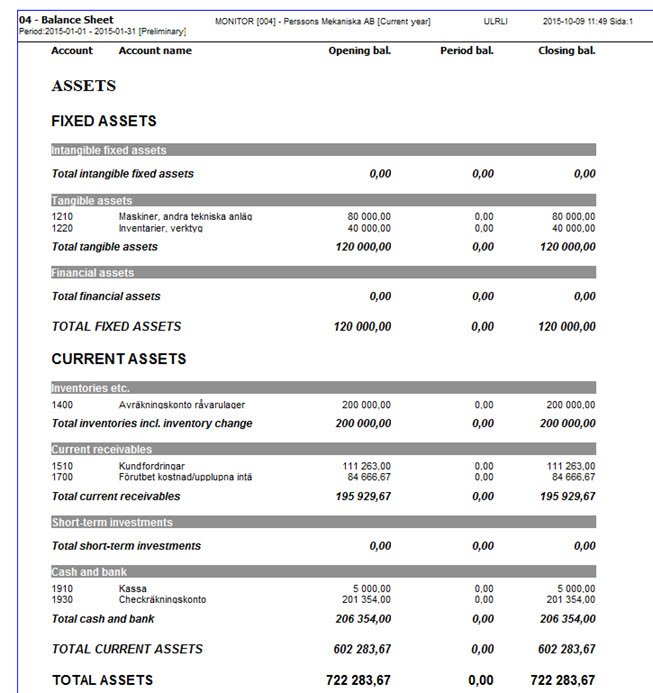 Below you will see printout samples of some reports that can be printed in the procedure.