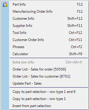 ** In these procedures you can only use the alternative "Insert from part selection" on the last row.
