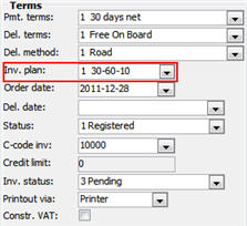 In the field Invoicing plan you select if the order shall be invoiced according to an invoicing plan.