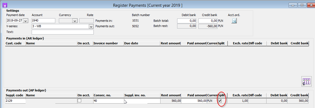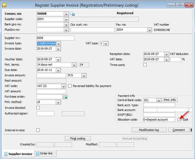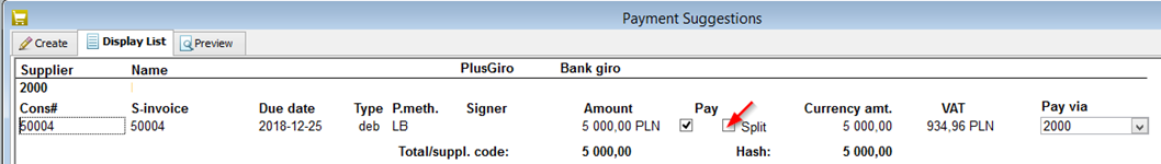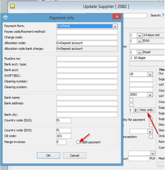 Check the Split payment box in the Payment info window in the Update Supplier procedure.