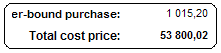 Under the Summary tab you can, in a box, see the amount of the order-bound purchase which is the amount of the purchase orders that have final coded supplier invoices. You will also see the Total cost price which is the Cost price + Order-bound purchase.