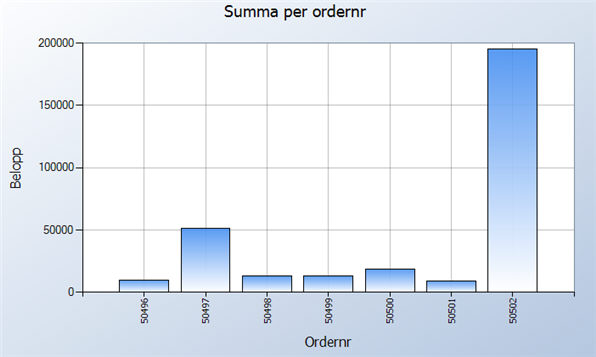 Exempel på lista Enbart summa, grupperad på Ordernummer, höger del av listan.