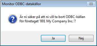 Ska du ta bort en datakälla du skapat i MONITOR ODBC-datakällor ska det göras här med alternativet Ta bort företag under menyn Redigera eller via knappen med ett rött kryss. Programmet håller nämligen reda på vilka datakällor som skapats härifrån.