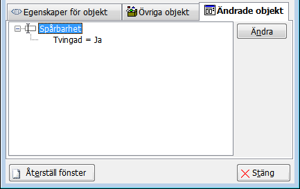 På fliken Ändrade objekt kan du se alla objekt i rutinfönstret som har fått ändrade egenskaper.