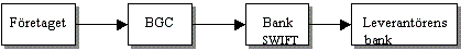 I MONITOR finns ett inbyggt stöd för utbetalningar till utländska leverantörer med hjälp av elektronisk överföring till bank eller post. För att kunna skicka utlandsbetalningar elektroniskt krävs dock först att ditt företag har ett sådant avtal med din bank/post. Om du ska skicka utlandsbetalningar till bank är det viktigt att avtalet gäller överföring via Bankgirocentralen (BGC) och inte direkt till din bank. Se figur.
