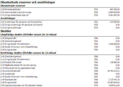 Du är här: Redovisning > Årsbyte / Periodbyte > Utskrift SRU > Utskriftsexempel