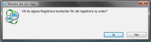 I ett e-postmeddelande med inköpsorder som du får från kunden är ordern även bifogad som en xml-fil. Leverantören kan då dra xml-filen direkt från e-postmeddelandet och släppa den i rutinfönstret Registrera kundorder eller i rutinmenyn i MONITOR.