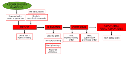 In MONITOR G5 there are different order flows for customer orders, purchase orders, and manufacturing orders. Here you find an outline of these order flows.