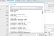A modal window direct the user to perform an action in the procedure by being placed over the procedure window and locking it. This means you must close the modal window first in order to access the procedure window again. Examples of such windows are all dialog windows. Another modal window opens when clicking the Go to field (Ctrl + G) on the toolbar in procedures. See the image example below.