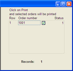 In this mode, you will see all the orders from the order register within the interval that you selected in the left portion of the window. You can deselect the orders that you do not want to print. This is an example of Method 1 - "Preliminary selection". To return to the left portion, just click on the Less <<< button.