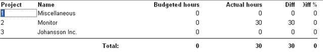 In the Time check list you will find the following information; Budgeted hours, Foretasted hours, Actual hours as well as the Difference in hours and percent. Under the Create tab you select to what the result shall be compared and the difference that occurs will then be shown in the columns Diff and Diff %.