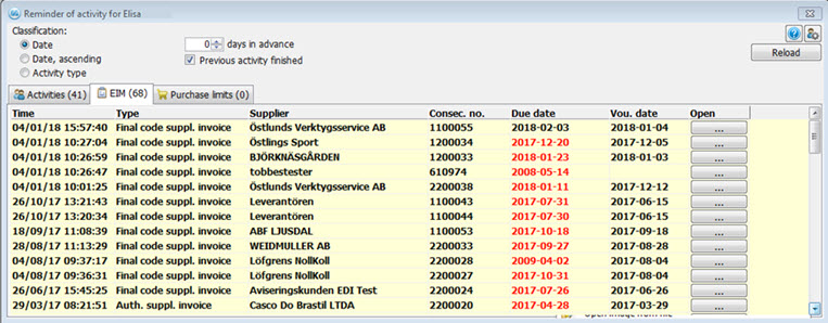 A corresponding reminder can be activated for invoices that should be final coded. This is determined with a separate setting and it can be useful to activate it for the users who perform final coding of invoices.