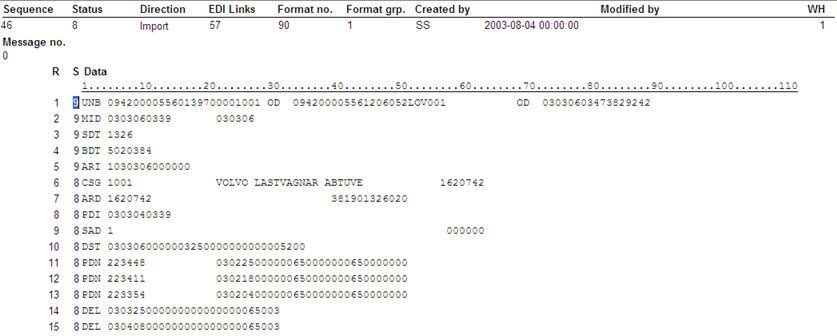 Each EDI message is represented in the table by a collection of rows. Different messages can be distinguished partly by their sequence number and/or its point of time.