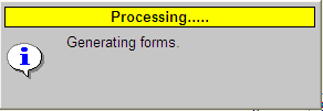 Generating all forms may take a few minutes, especially if they are to be translated into many languages. It takes twice as long to generate forms for two languages rather than just one. While the system is generating forms, a window is displayed indicating that the system is processing the generation of forms.