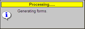 During generation of forms this is displayed in an info box and down in the Status bar. The generation of forms is finished in a matter of seconds.