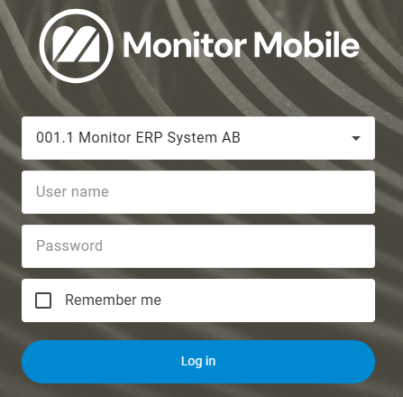 When you launch the Monitor ERP mobile client, a login page appears. Here you can choose the company to open, and enter the user name and password in the company selected. The next time you launch the mobile client, the company and user you most recently entered will appear in the login page by default.
