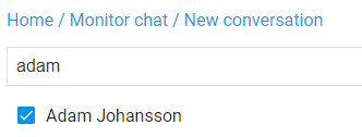 and then you select one or several recipients in the list and tap on Start conversation. If you have existing chats you will also find a search field at the top of the list where you can search for users to send to.