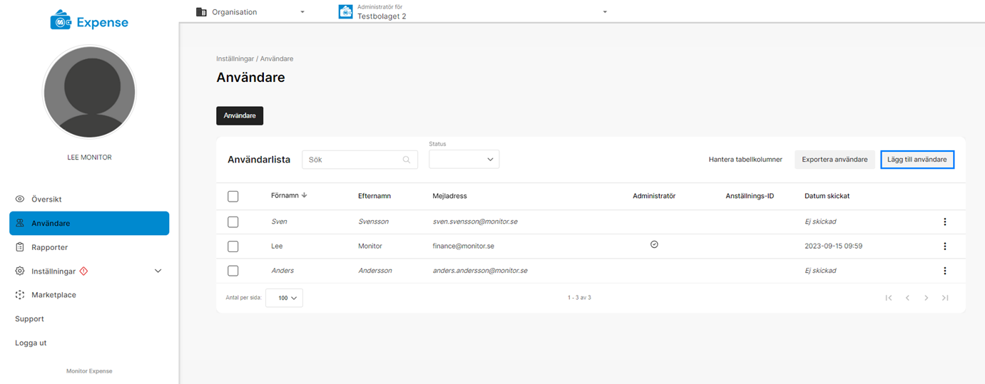 Här kan du bjuda in nya användare genom att klicka på Lägg till användare.