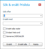 Med knappen Ersätt så ersätter du värdet i fältet på den markerade raden.