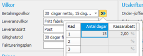 I rutinerna Kundregister och Leverantörsregister visas en knapp intill betalningsvillkoret om det finns kassarabatt kopplat till villkoret.
