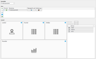 I tabellen Vyer visas de vyer som följer med som standard till vald datakälla. Det är här du lägger till nya egna vyer. En ny vy kan antingen skapas som en tom vy via knappen Lägg till rad sist