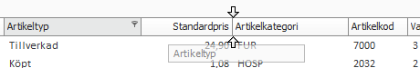 i standard layout. Den innehåller då kolumner som inte visas förvalt. Du kan ta fram en kolumn som du vill visa genom att dra den från den knappen och släppa på tabellen.