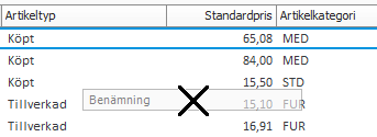 För att gömma en kolumn så drar du kolumnrubriken med muspekaren och släpper den ovanför eller nedanför de andra rubrikerna i listan eller tabellen. Du ser ett kryss när du kan släppa kolumnrubriken. Se bildexemplet nedan.