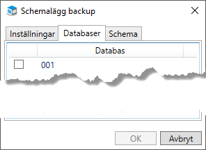Under fliken Databaser kryssar du i den databas som ska tas med i backupjobbet. Då tänds knappen OK och du kan skapa backupjobbet.