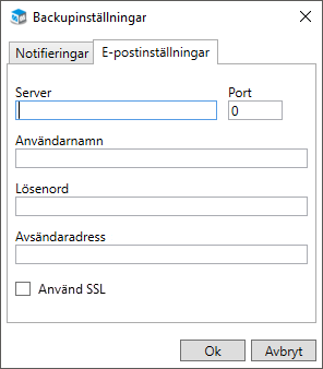 De generella backupinställningarna avser notiser via e-post vid misslyckade körningar av backupjobb. Du behöver göra dessa inställningar en gång. De gäller sedan för alla backupjobb som du skapar eller har skapat.