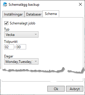 Du ställer även in Tidpunkt och markerar de Dagar eller Månader då backupjobbet ska köras.