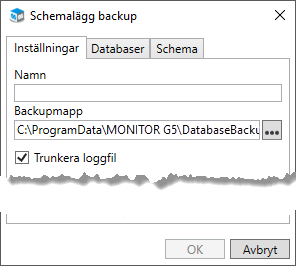 MONITOR Installationshanterare används för att skapa och schemalägga backup av skarpa företagsdatabaser i MONITOR G5.