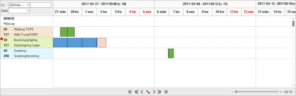 – Gå till kritisk operation/material. Med knappen kan du navigera i tabellen till första operationen eller materialet som är kritiskt. -