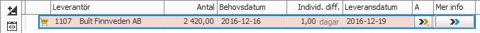 som då är aktiv. Här har du möjlighet att se om alternativa leverantörer och deras ledtid kan påverka om tidigare leverans av kritiskt material är möjlig. Under knappen Mer info
